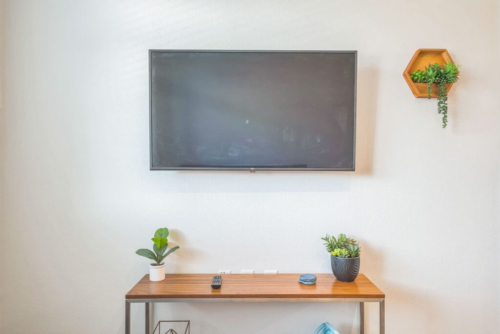 Living Room: Relax in the cozy living room, complete with a regular couch, a coffee table, and a 55-inch TV equipped with streaming services for your entertainment.