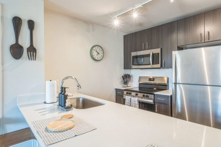 Kitchen: The kitchen comes with essential appliances, including a refrigerator, oven/stove, dishwasher, and microwave. Please note, there is no toaster or coffee maker.