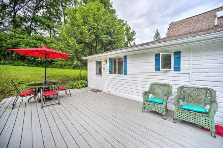 Historic house – Play ball! Nestled in the quaint village of Milford, this baseball-themed cottage is perfect for your next trip to the Cooperstown area! With a furnished deck, a gas grill, and a spacious yard, this 2 bedroom, 1-bathroom vacation rental is a home run! Spend a day at the Nat’l Baseball Hall of Fame or hike around the Catskill Mountains before checking out the local breweries. Finish the day watching the sunset from this peaceful property while roasting s’mores around the fire pit with loved ones!