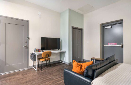 This 2-bedroom combo unit offers the unique benefit of two connected studios, providing extra space and flexibility for your stay. With a shared connecting door, you’ll enjoy the comfort and convenience of both rooms while having your own private spaces. Book your stay today and experience the best of Macon!