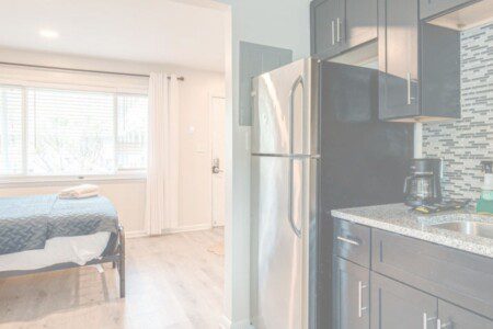 The studio complex is old. It was built in the 1950s and its age is starting to show. While we’ve taken measures to improve our condo, keep this in mind when booking. You won’t be arriving at a fancy condo complex; it’s a modest 2-story building sitting among trendy new construction. You will be booking this unit for the location and, if in the summer, the pool.