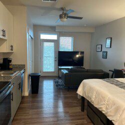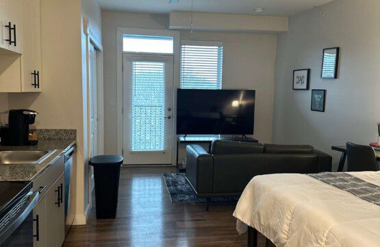 – Spacious Studio – Thoughtfully designed with a comfortable queen-size bed, plush bedding, and stylish décor, creating a cozy and functional space for your stay.