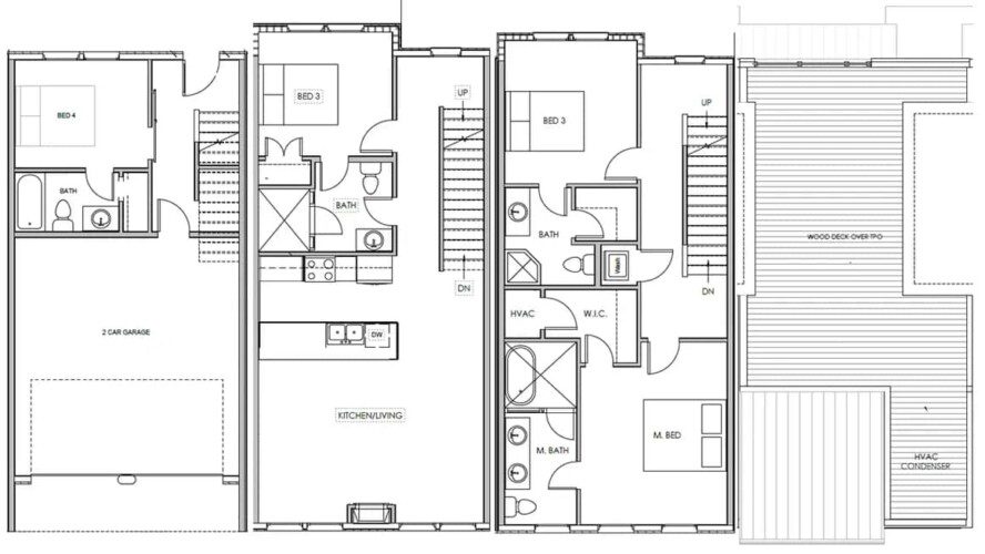 Host your group in style at these two modern 4-bedroom, 4-bath townhomes located within a private complex near Belmont University. Each home offers the same sleek, high-end design — with open living areas, chef-style kitchens, private rooftop decks, and 2-car garages.