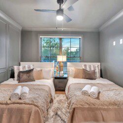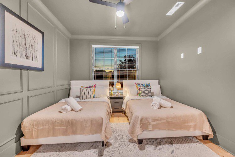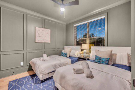 Guests have exclusive access to two separate townhomes within the same complex, each with private entry, garage, and rooftop deck. Check-in is keyless and coordinated for a smooth group arrival.