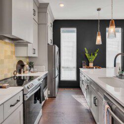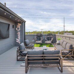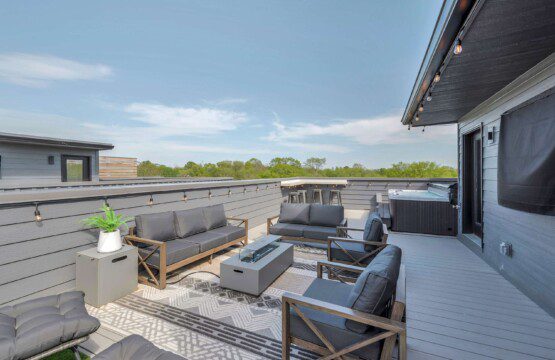 Whether you’re hosting a celebration, team trip, or gathering with friends, these two thoughtfully styled homes offer space, comfort, and personality. Each unit features its own fully stocked kitchen, curated living areas, private garage, and rooftop lounge—giving your group both room to spread out and places to come together.