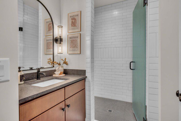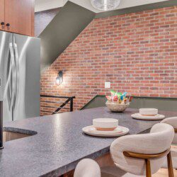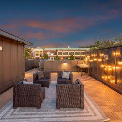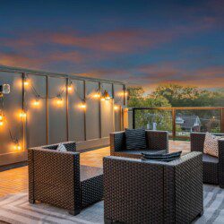 After a day in 12 South or Music Row, gather in the open-concept living area featuring exposed brick, plush seating, and a Smart TV — or head upstairs to relax under string lights on the rooftop lounge.