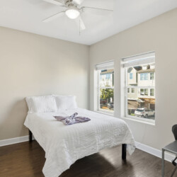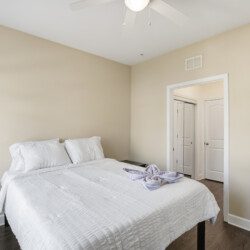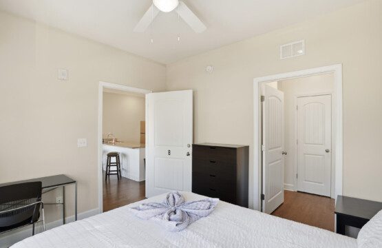 Relax in a stylish two-bedroom apartment featuring private bathrooms, queen-size beds, and generous walk-in closets. The open kitchen includes stainless-steel appliances, granite countertops, and a full-size washer and dryer for your convenience.