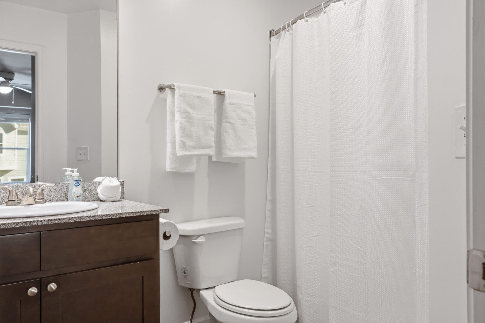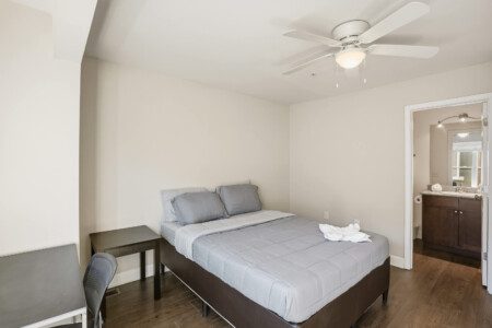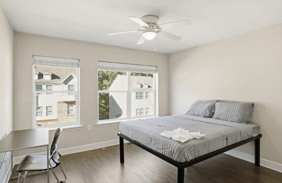 This expansive 4BR/4.5BA townhome offers the perfect mix of privacy and space. Each bedroom includes its own ensuite bathroom, queen-size bed, and walk-in closet. The open-concept living area flows into a modern kitchen with stainless-steel appliances, granite countertops, and a full-size washer and dryer.