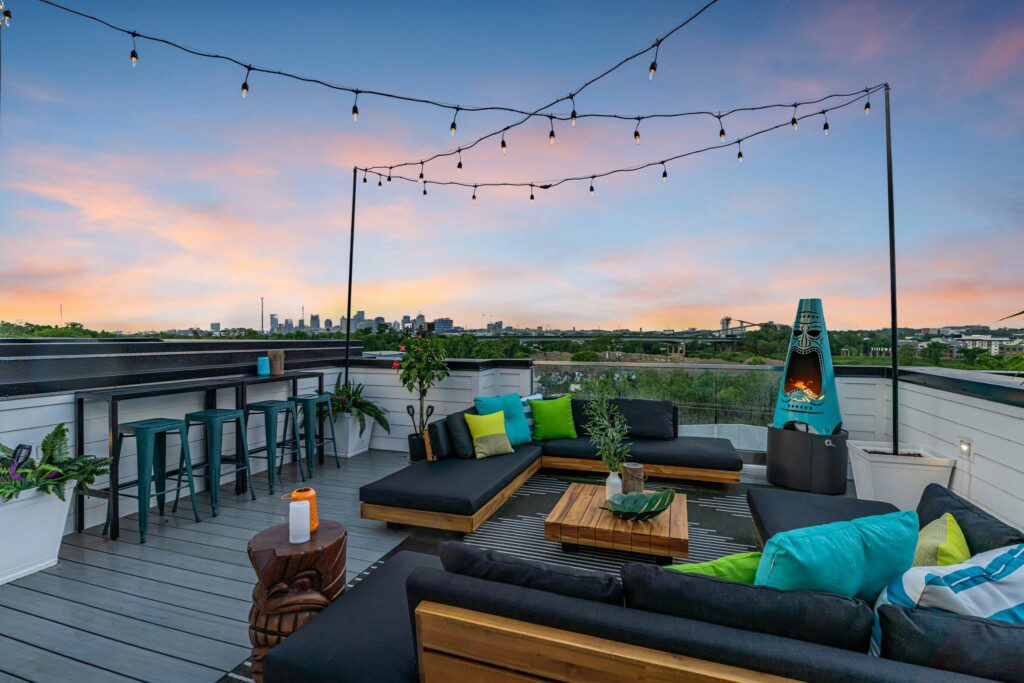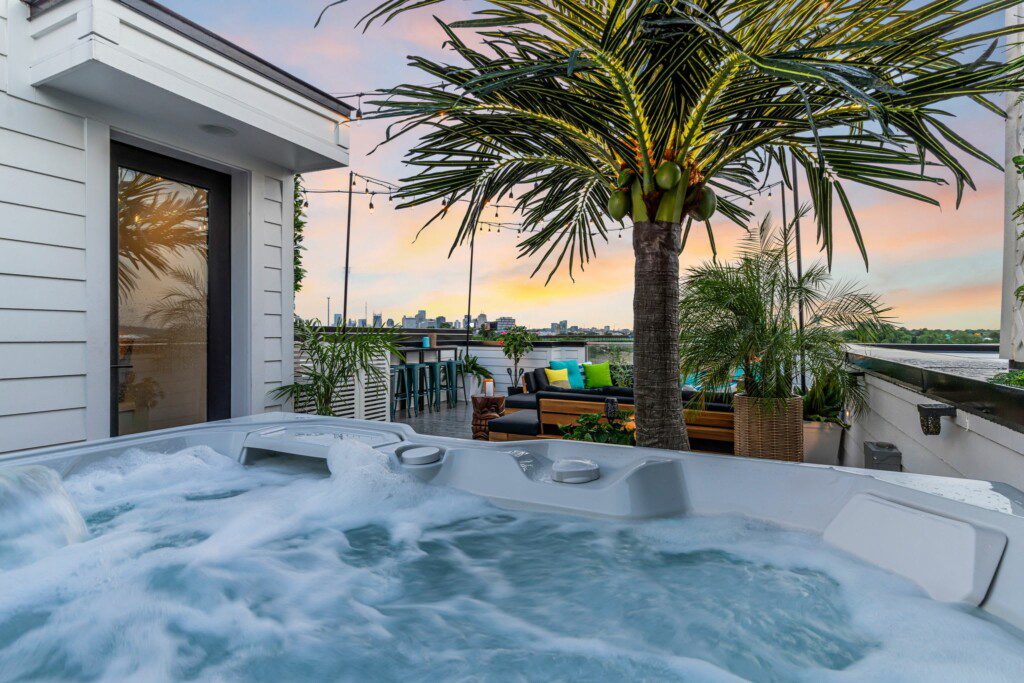 “NashTiki” Rooftop: Indulge in the expansive rooftop area featuring a hot tub and multiple seating arrangements, ideal for soaking up the sun or unwinding with loved ones.