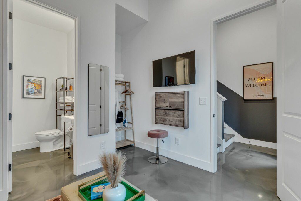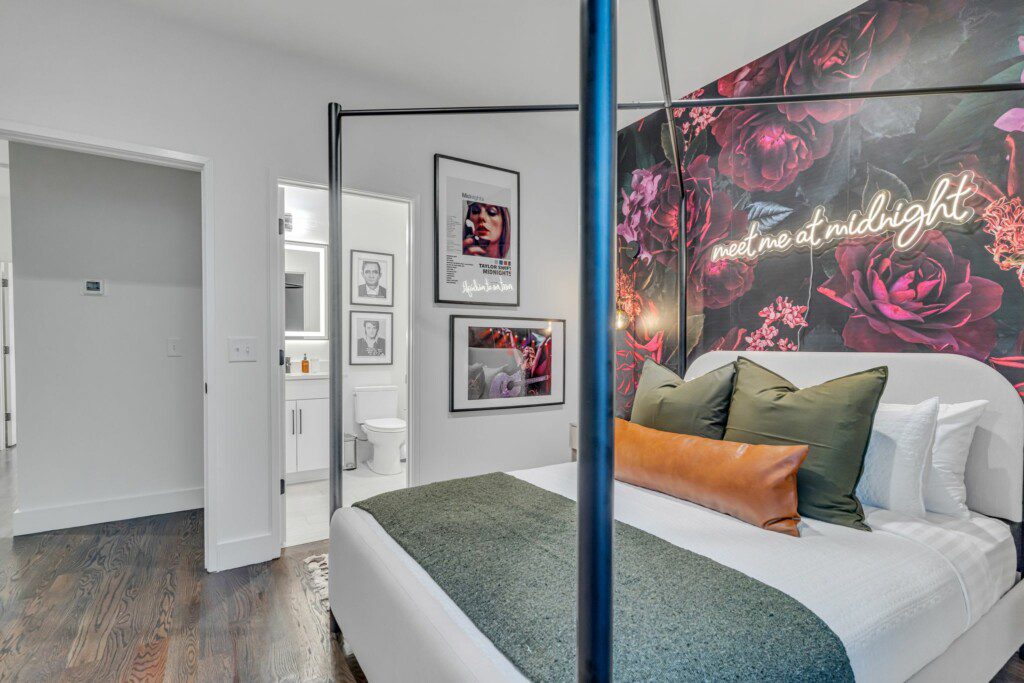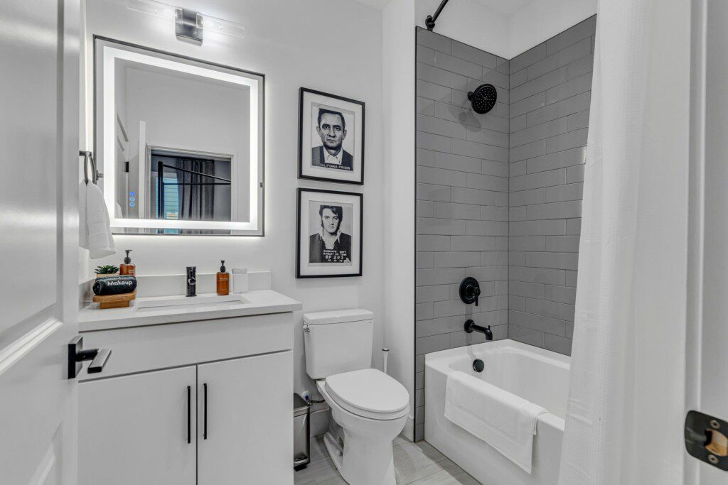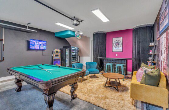 Experience this new construction, professionally designed Nashville adult playground, featuring downtown views from the rooftop hot tub, a game room with vending machine, electronic games, billiards & a bar, and high end finishes throughout this 4 bedrooms, 4 bathroom stunner! Enjoy the gourmet kitchen, themed bedrooms, and make-up mirrors. Situated only 3 miles from downtown and .5 from the future site of Landings at River North, you can explore the city’s attractions easily.