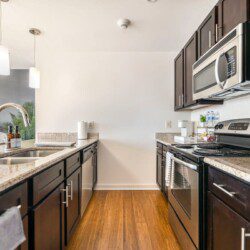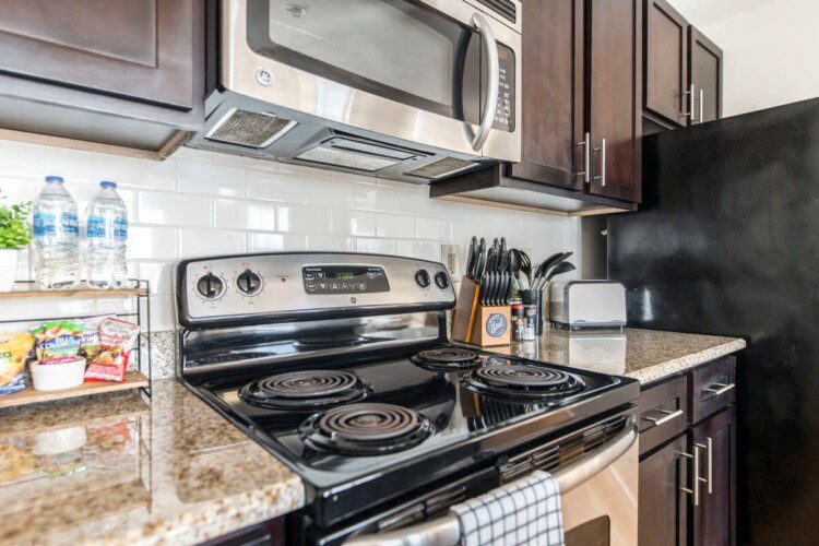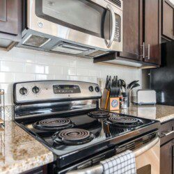Kitchen: Equipped with stainless steel appliances, granite countertops, a dishwasher, microwave, range, and refrigerator.