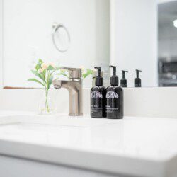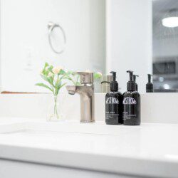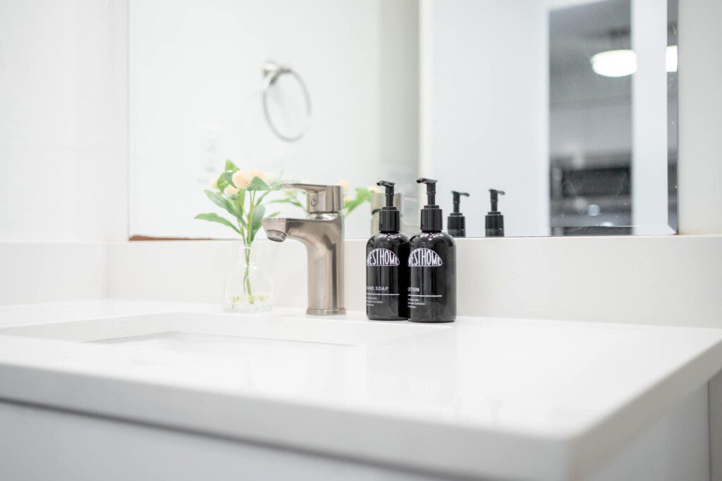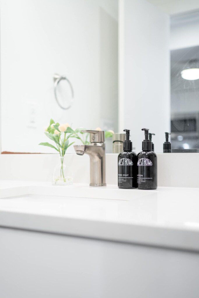 Bathroom: Stocked with bath essentials and high-quality soaps, with new tile flooring