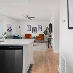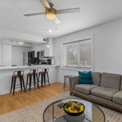 This apartment offers modern updates with a layout that provides privacy and comfort.