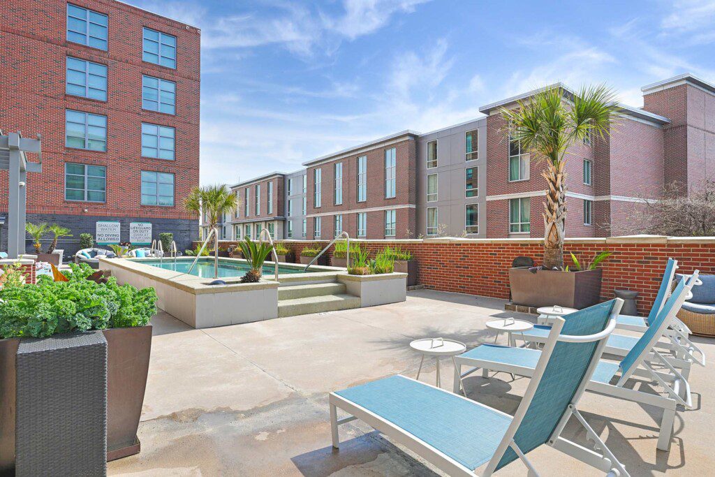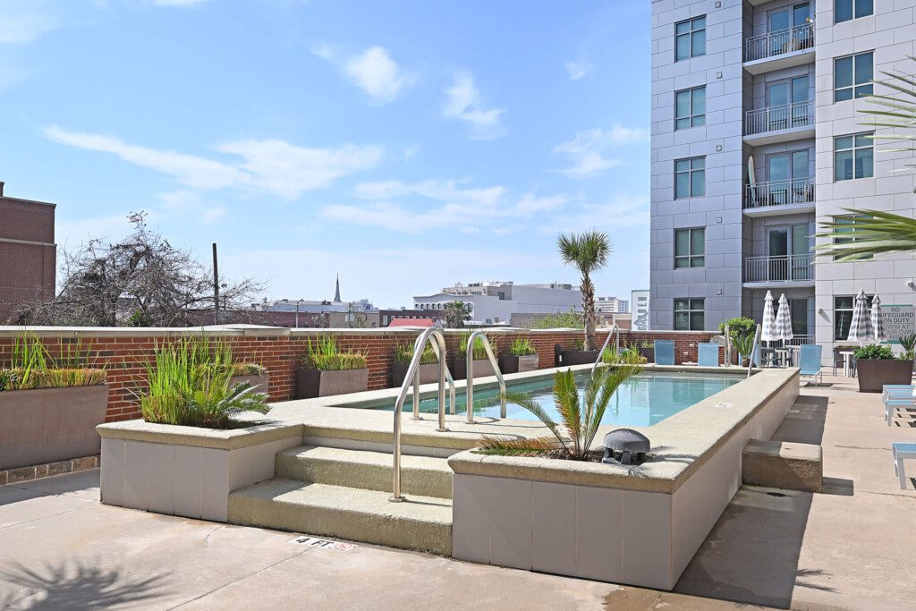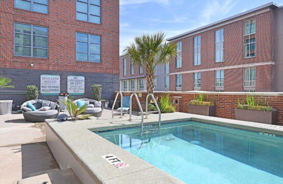 Stay near King Street in a space built for longer visits. This studio apartment includes in-unit laundry, a full kitchen, and secure building access. Guests also have access to a pool, gym, and shared amenities. Ideal for traveling professionals or anyone needing a comfortable, extended stay in Charleston.